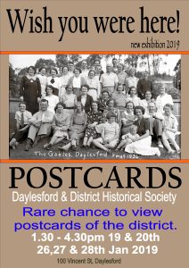 A rare chance to view nearly 200 old postcards of Daylesford and District. See the first postcards produced in the town by local printers and newspaper proprietors. Bring along your collection for us all to share and provide some context to their image.